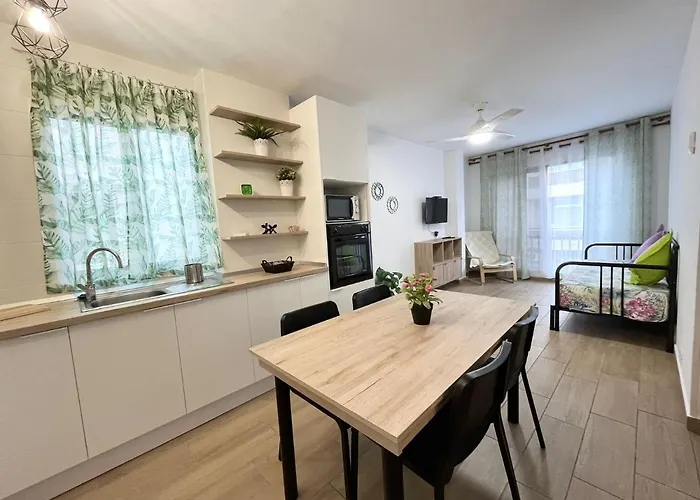 A fully furnished kitchen is complete with coffee/tea making equipment, as well as a microwave, a refrigerator, and kitchenware essential for self-catering. Casa Melina Apartment is around 10 minutes' walk from the nearest bus stop Sol Arona Tenerife.